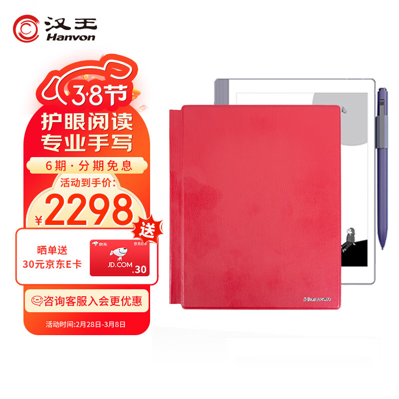 汉王(Hanvon)N10mini手写电纸本 7.8英寸电子书阅读器墨水屏电纸书智能办公本4+64版中国红保护套.套装价格:2298.00元!