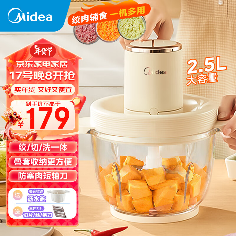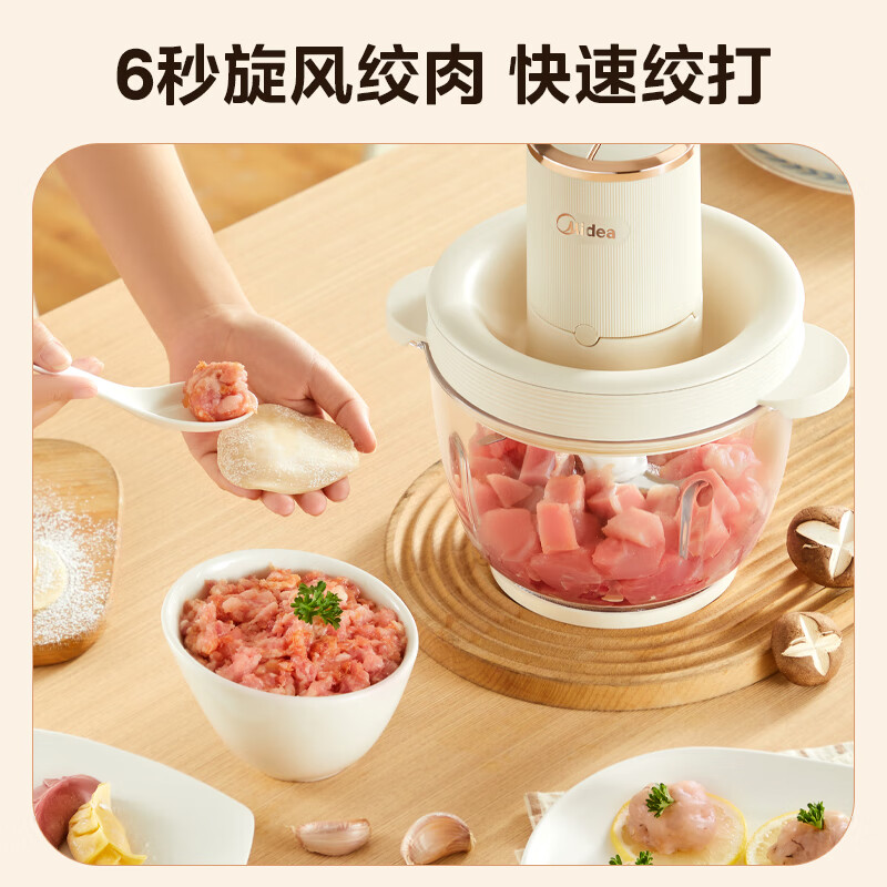 美的(Midea)绞肉机家用电动婴儿辅食机料理机绞肉馅机台式搅拌机智能绞馅机MJ-JD71价格:179.00元!