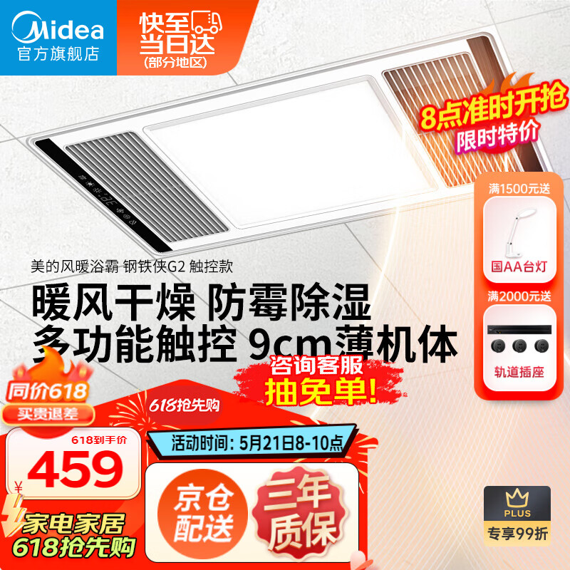 美的(Midea)浴霸风暖浴室卫生间暖风取暖器强暖照明一体集成吊顶触控款暖风机价格:479.00元!