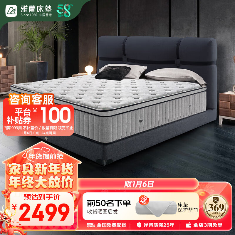 雅兰乳胶床垫偏硬家用天然黄麻独立弹簧床垫 有度旗舰版 1.5*2米价格:2999.00元!