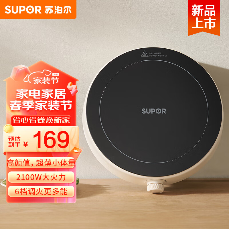 苏泊尔(SUPOR)电磁炉 2100W大功率 6档火力 旋钮调节 圆形 小巧 多功能 家用火锅炉 coco系列C21-IC807价格:169.00元!