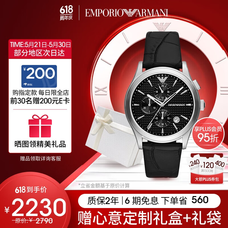 安普里奥·阿玛尼(Emporio Armani)手表男士简约三眼多功能石英男士表送男友520情人节礼物AR11530价格:2630.00元!