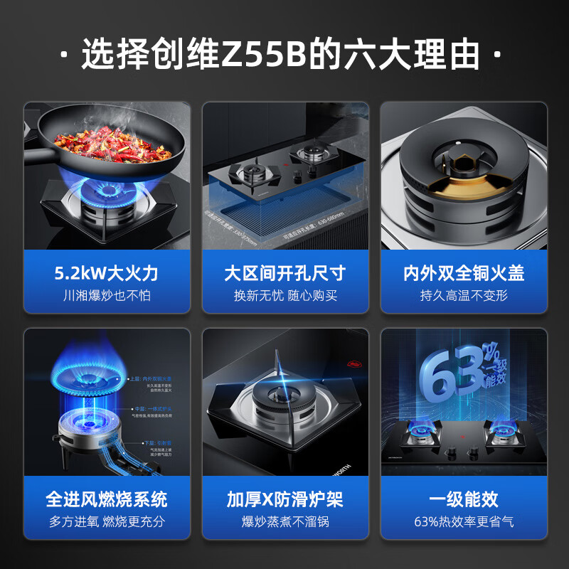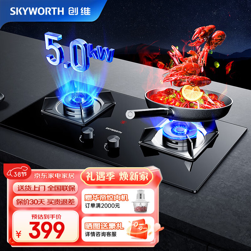 创维(Skyworth)燃气灶双灶家用液化气煤气灶 5.0KW大火力灶具 台式嵌入式两用 钢化玻璃猛火灶台 Z55B(液化气)价格:399.00元!