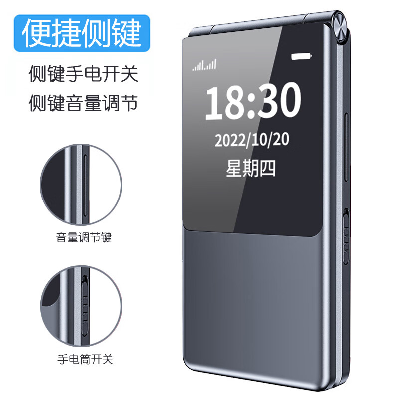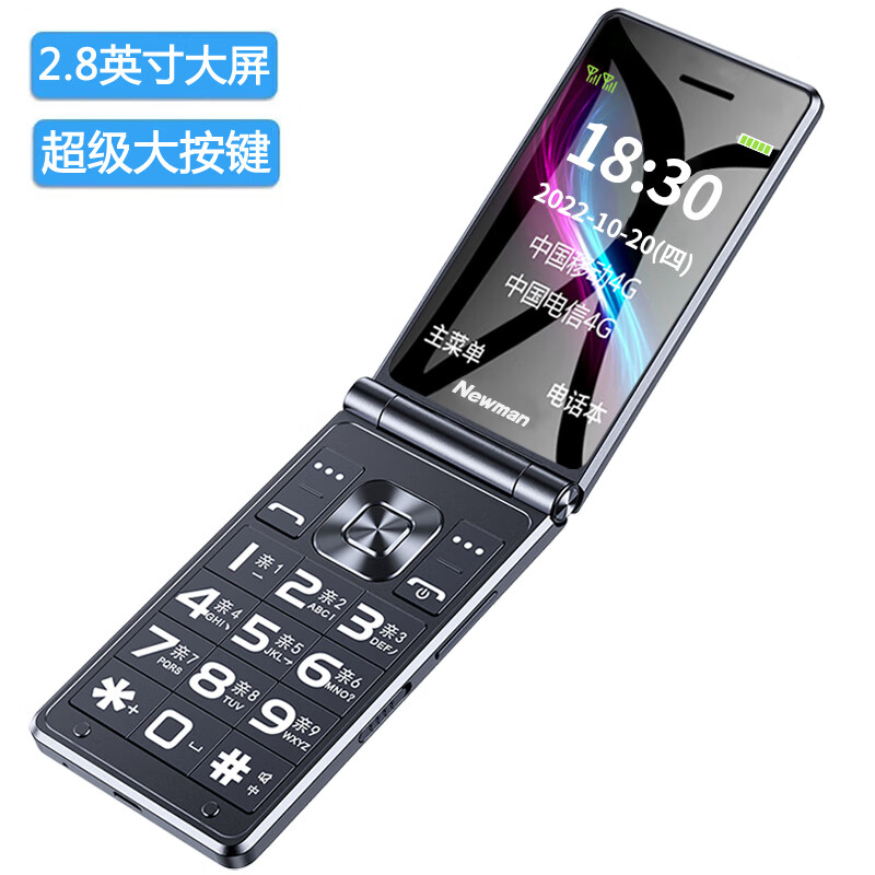 纽曼 W69经典黑 2.8英寸4G通翻盖老人手机 双屏双卡双待大字大声音大按键老年机 学生备用功能机价格:188.00元!