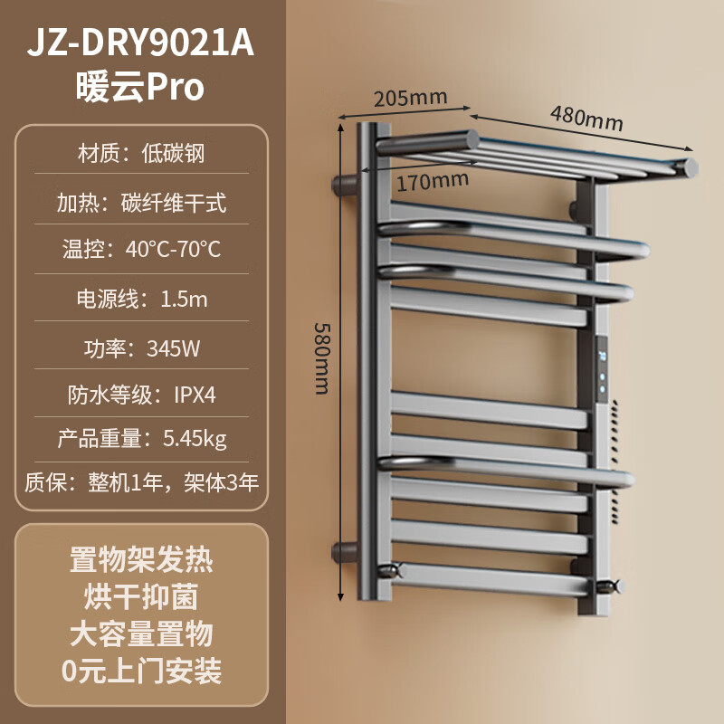 京东京造暖云Pro电热毛巾架智能款 碳纤维加热卫生间浴室烘干包安装太空灰价格:529.00元!