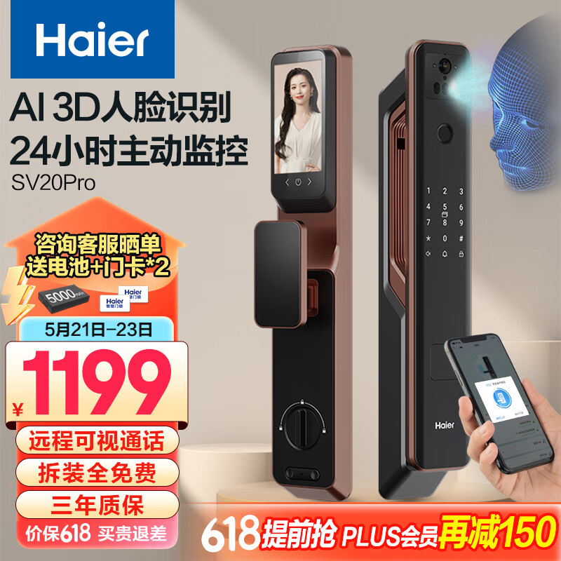 海尔(Haier)人脸识别智能门锁指纹锁密码锁猫眼电子门锁HFA-20SV-U1(Pro)价格:1599.00元!