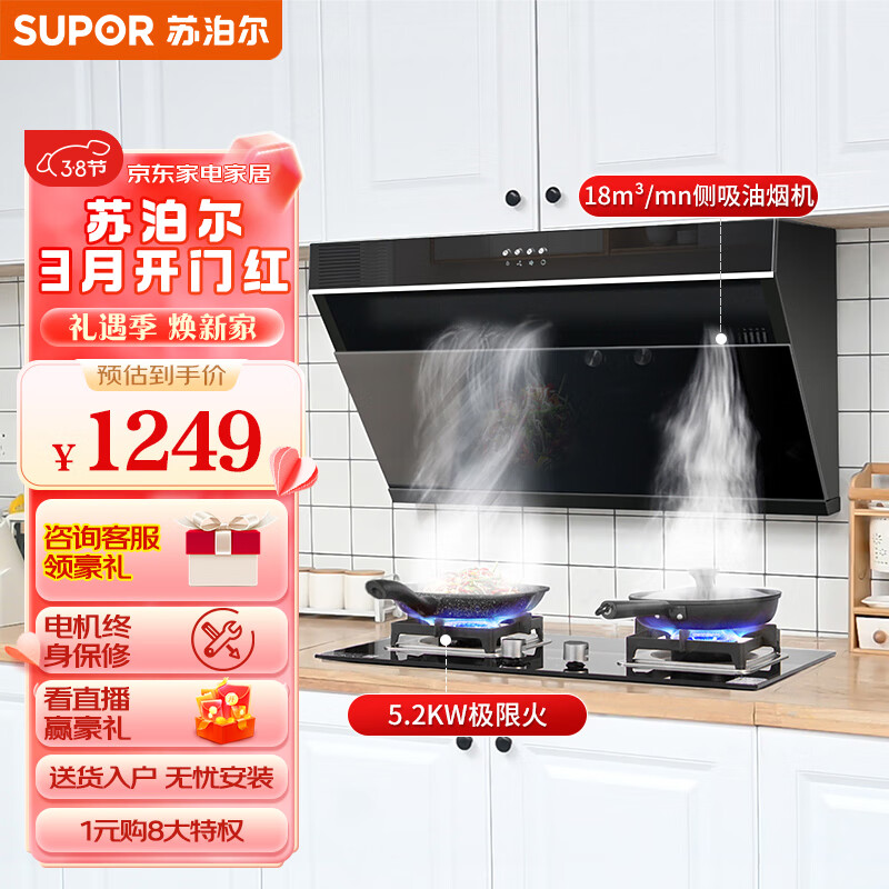 苏泊尔(SUPOR) 抽油烟机烟灶套装 18立方爆炒侧吸式家用吸油烟机燃气灶套装 DJ13+DB27液价格:1249.00元!
