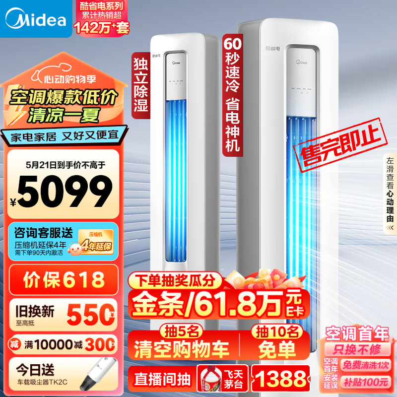 美的(Midea)空调 3匹 酷省电 三级能效 变频冷暖 空调立式 客厅空调柜机 智能家电 独立除湿 KFR-72LW/N8KS1-3价格:5099.00元!