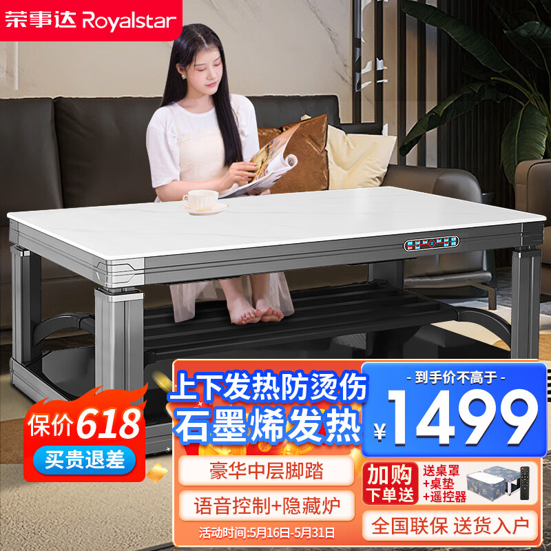 荣事达电暖桌1.38米取暖桌长方形烤火桌石墨烯发热烤火茶几家用变频节能多功能升降语音控制电暖炉RC-C4价格:1999.00元!