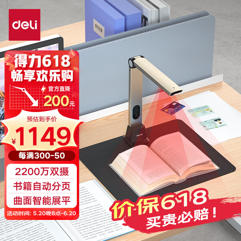 得力扫描仪 2200万超清双摄高拍仪 照片扫描仪自动连续 高速办公用 书籍扫描 曲面展平 自动分页GK201价格:1349.00元!