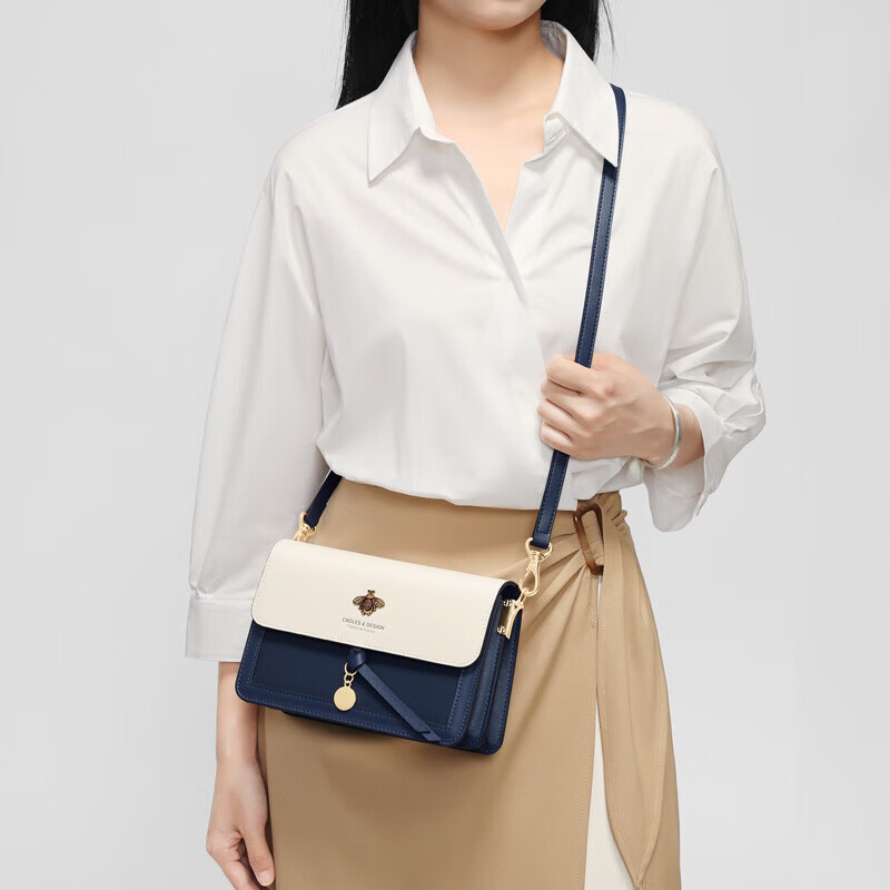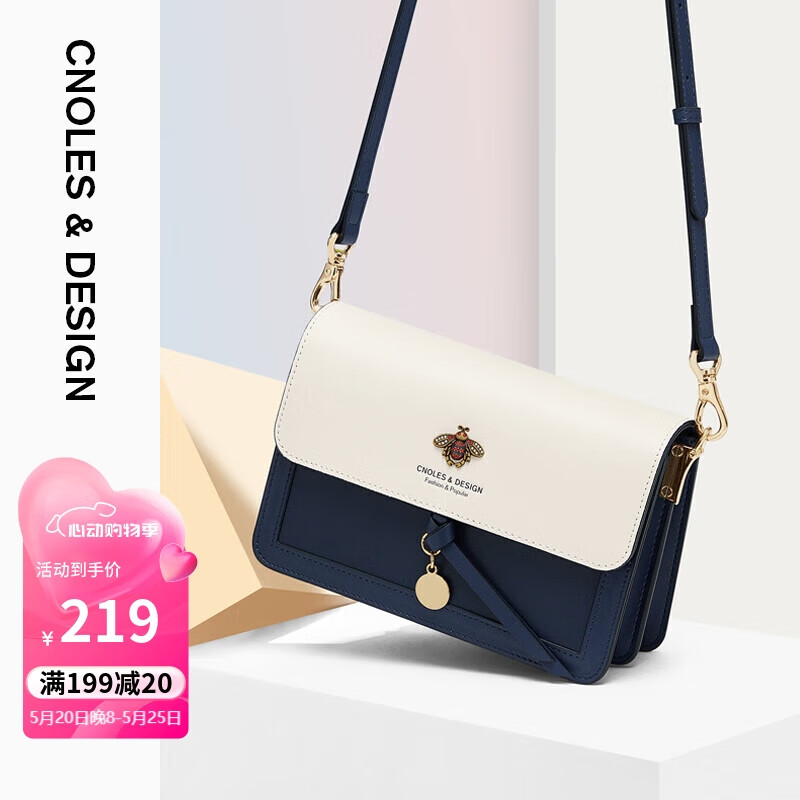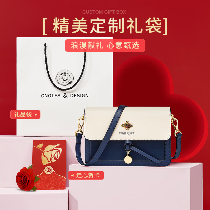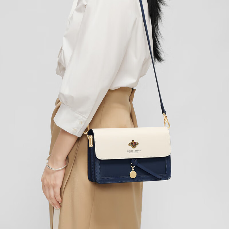 蔻一(Cnoles)520情人节礼物斜挎包女士牛皮单肩包百搭大容量高端品牌女款小方包生日送女友老婆 米白配蓝价格:239.00元!