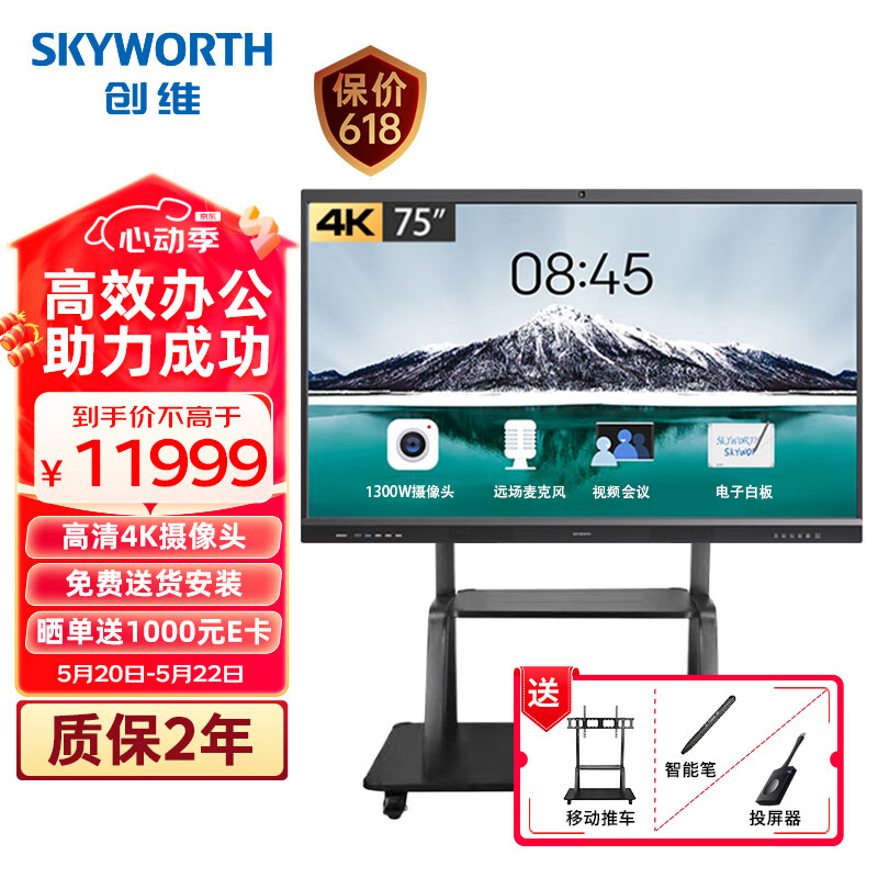 创维(Skyworth)会议平板75英寸智能触摸一体机电子白板无线传屏投影视频会议电视内置8阵列麦克风75MBK7投屏推车价格:14349.00元!