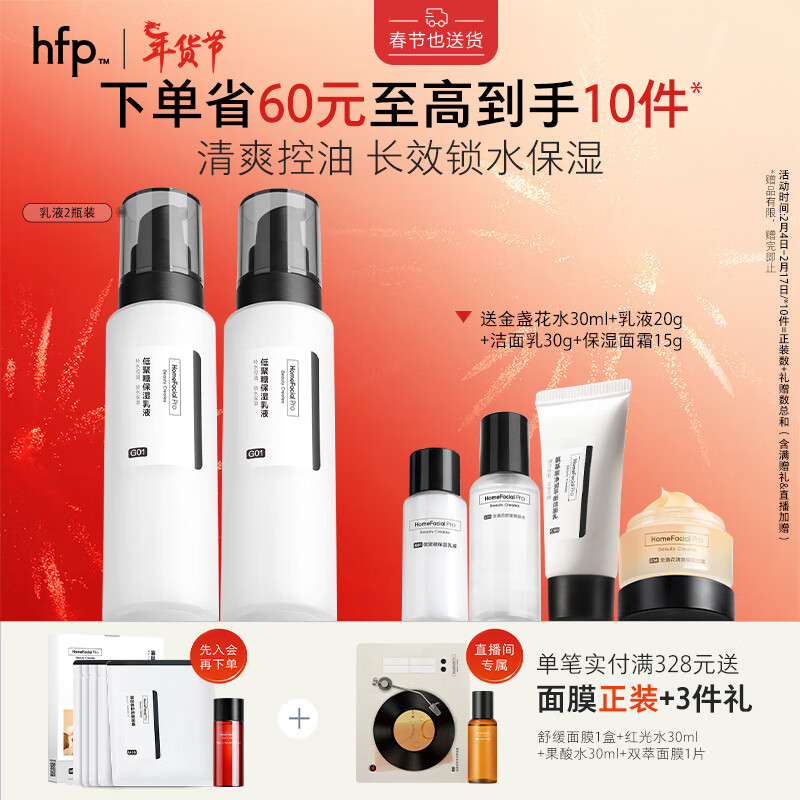 HomeFacialPro低聚糖保湿乳液118g双支装 hfp清爽控油补水舒缓乳高保湿价格:398.00元!