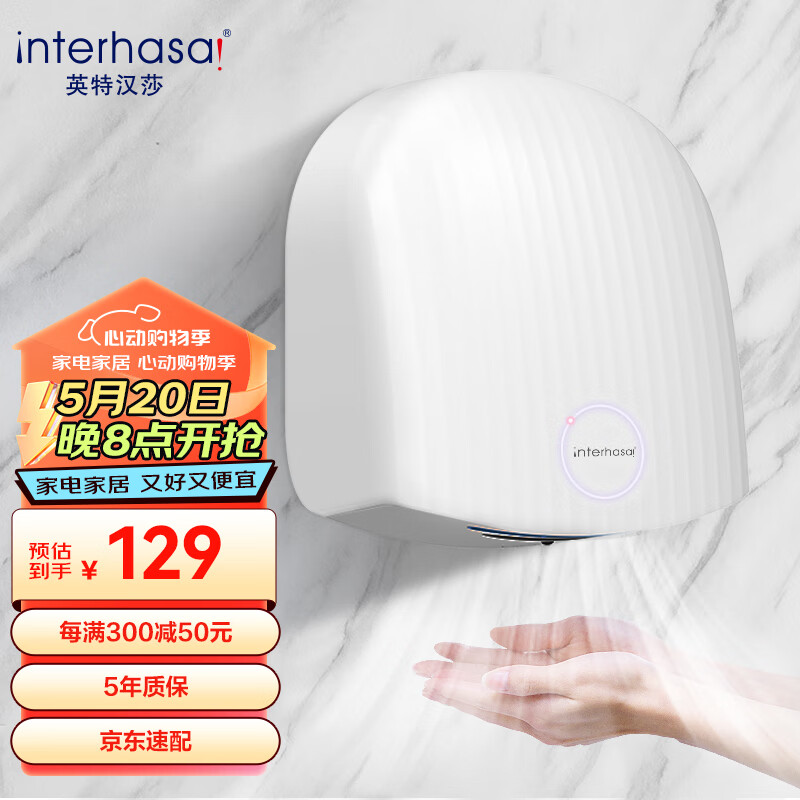 英特汉莎(interhasa!)YTA1020 烘手机干手器自动感应卫生间吹手烘干机洗手烘手器干手机价格:129.00元!
