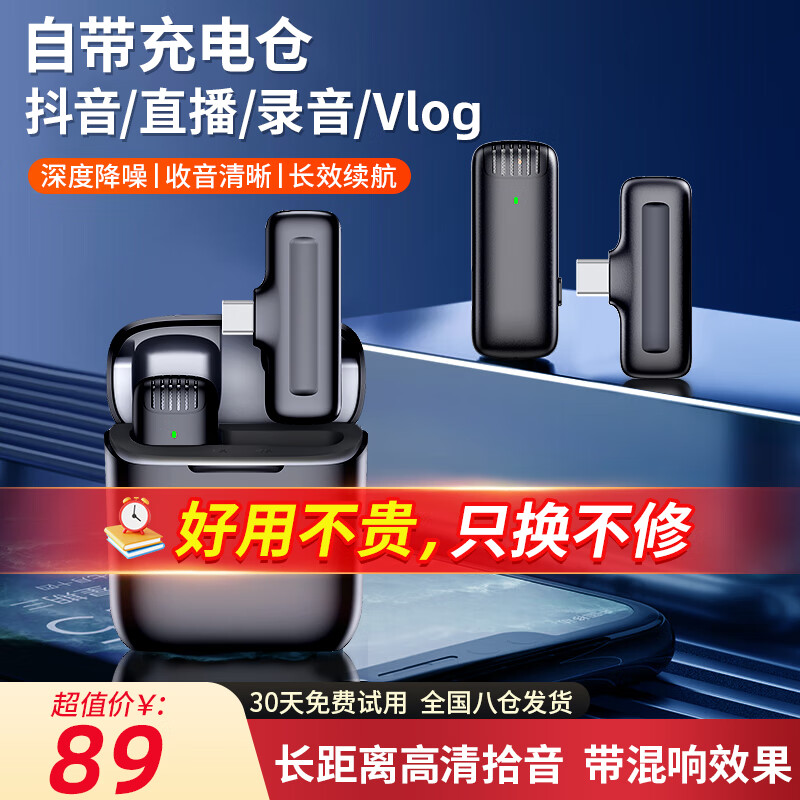 爱百分 专业无线领夹麦克风声卡收音器手机通用直播小蜜蜂户外采访降噪短视频专业vlog混响话筒拍摄录音 充电仓一拖一【安卓接口+降噪混响】价格:109.00元!
