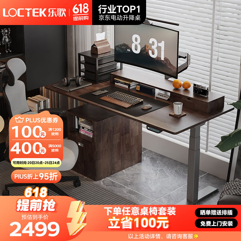 乐歌双电机电动升降电脑桌电竞站立办公学习写字书桌1.4m灰木纹E5N价格:2499.00元!