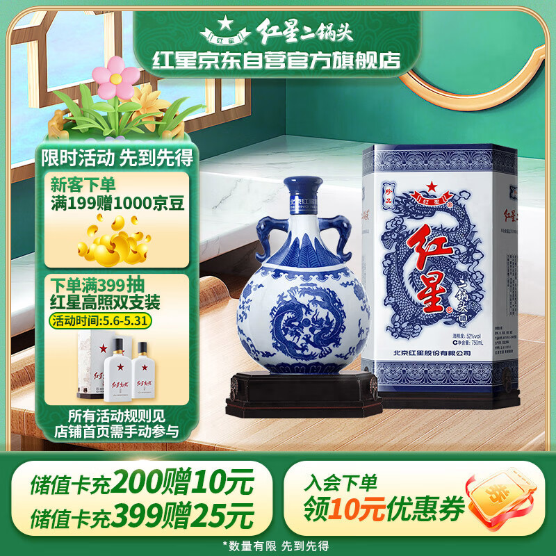红星二锅头青花珍品 清香型白酒 52度 750ml 单瓶装送礼价格:289.00元!