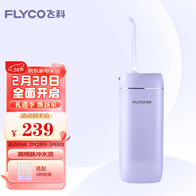 飞科(FLYCO)立式冲牙器洗牙器洁牙器 高频脉冲水牙线 家用便携清洁器 情人节新年礼物FP7800极光紫价格:359.00元!