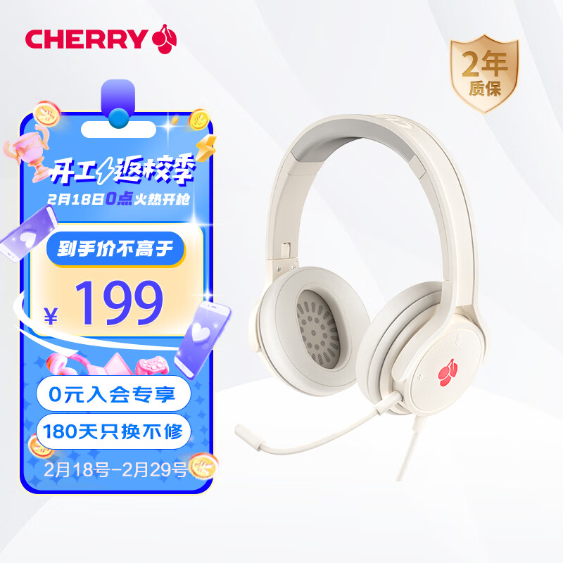 CHERRY樱桃(CHERRY)HC2.2 游戏耳机 7.1环绕音效 头戴式耳机 电竞耳机 LOGO灯效 白色价格:199.00元!