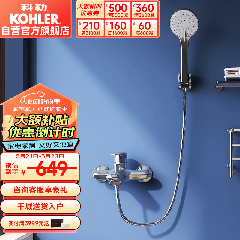 科勒(KOHLER)挂墙式淋浴花洒套装浴缸龙头家用手持花洒淋浴器 28580 带下出水价格:809.00元!