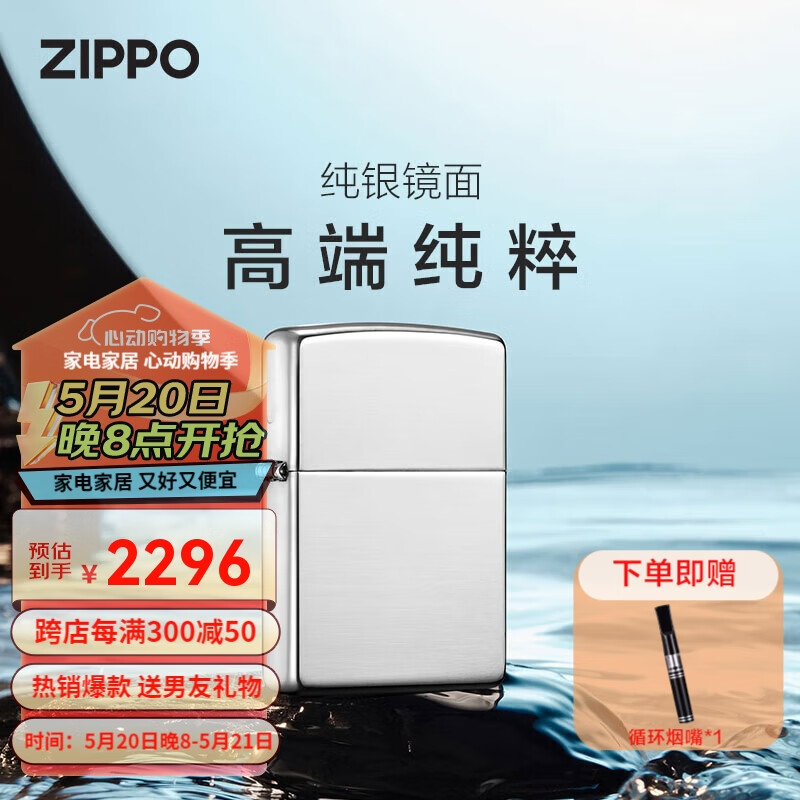 ZIPPO打火机之宝防风煤油 盔甲镜面银 520礼物送老公送男友 单机礼盒价格:2746.00元!