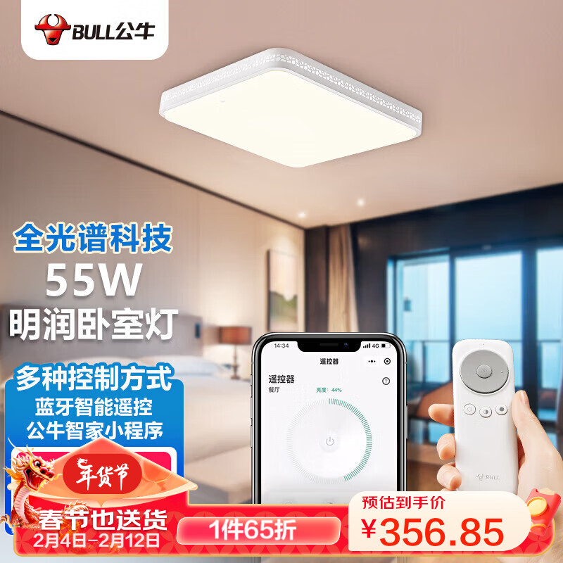 公牛(BULL)LED吸顶灯全光谱蓝牙连接MX-B055D-CS明润客厅卧室灯无极调光55W价格:549.00元!