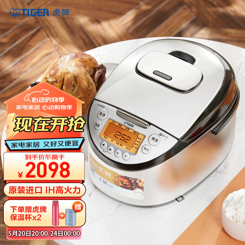 虎牌(TIGER)电饭煲 Pro 日本进口智能IH土锅涂层电饭煲 5L家用预约3-10人JKT-D18C价格:2198.00元!