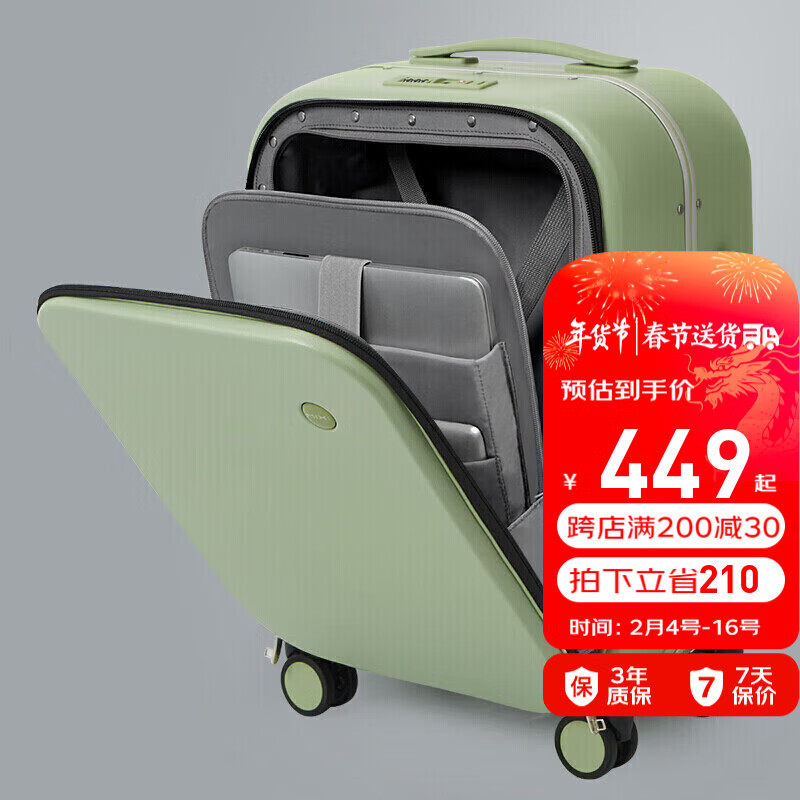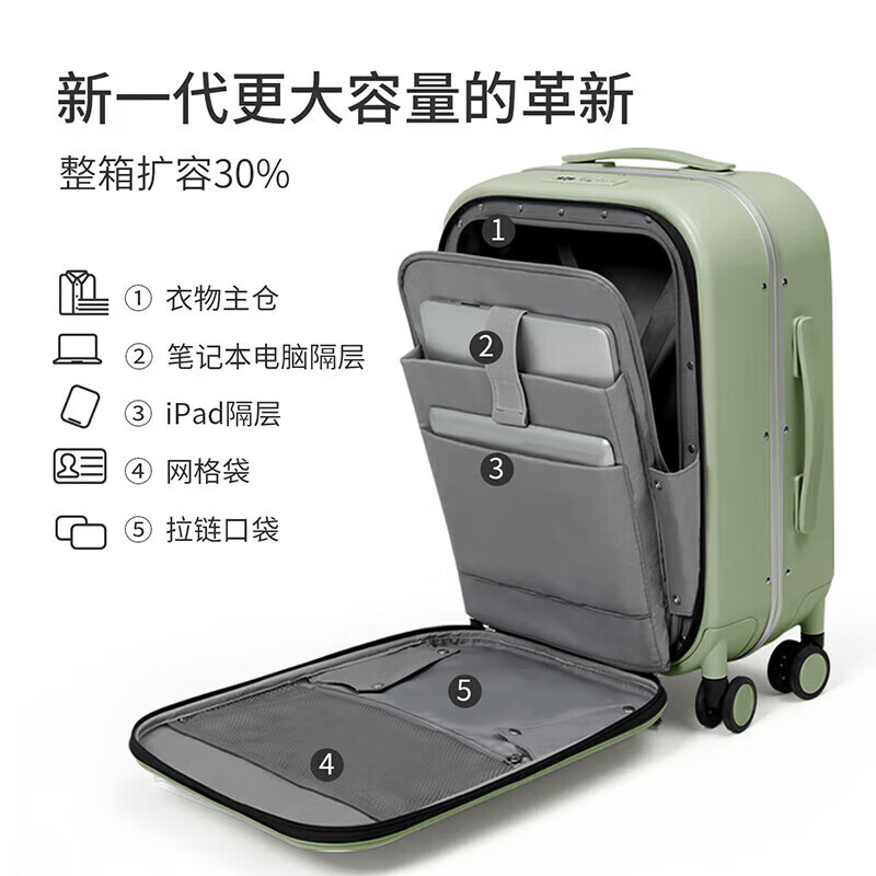米熙前开盖拉杆箱子行李箱大容量密码铝框箱女旅行箱20英寸牛油果绿60价格:659.00元!