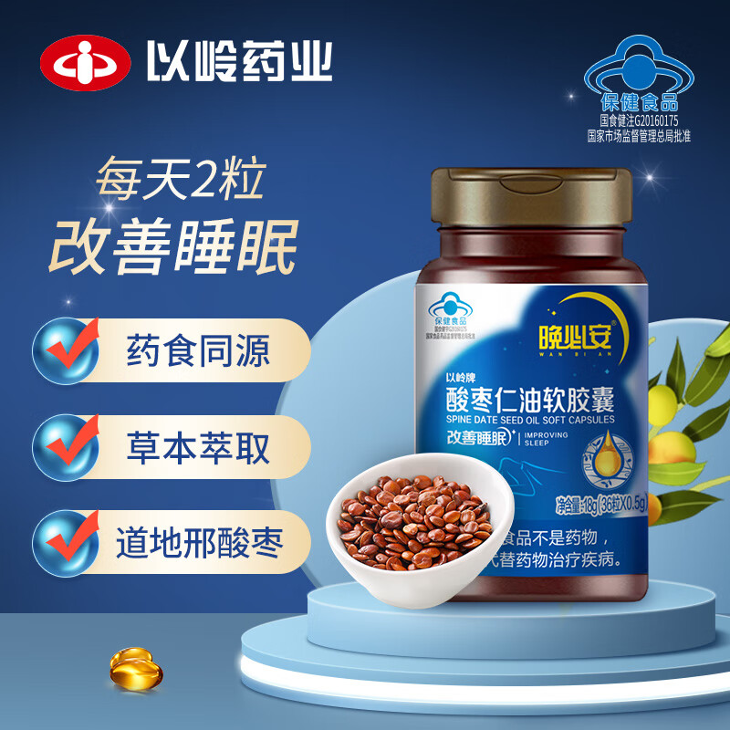 以岭 晚必安酸枣仁油软胶囊 改善睡眠酸枣仁 中药材萃取助睡眠 以岭药业500mg*36粒年货礼盒价格:188.00元!