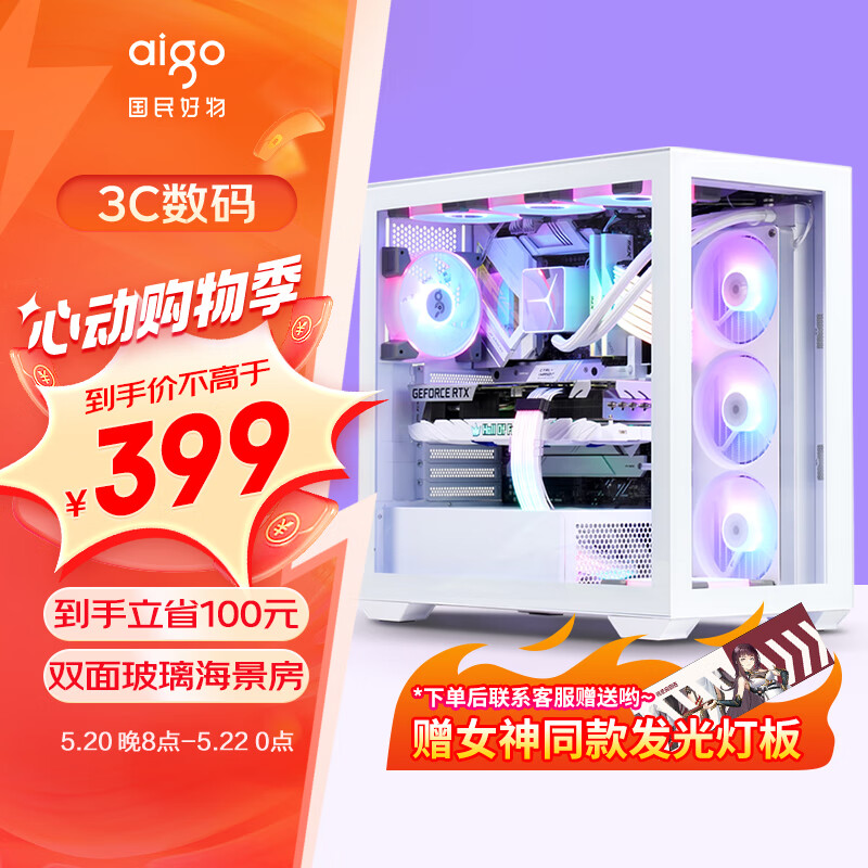 爱国者(aigo)月光宝盒 镜 白色 游戏台式电脑机箱 支持双360水冷/E-ATX主板/Type-c/白色海景房/4090显卡价格:399.00元!