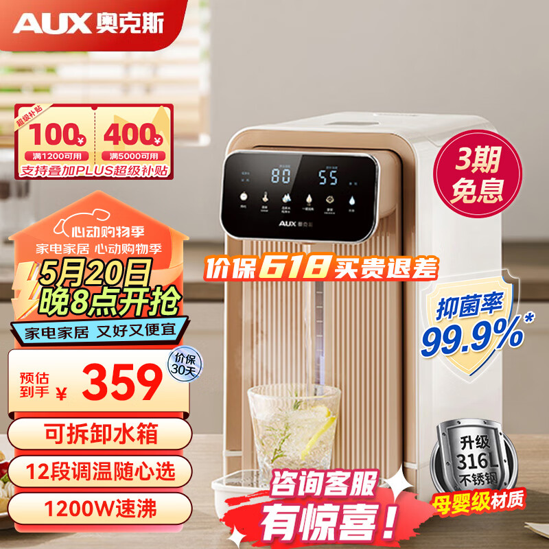 奥克斯(AUX)电热水瓶 双层电热水壶烧水壶 5L大容量316L不锈钢电水瓶 多段保温恒温电水壶【水箱可拆】8560FY价格:359.00元!