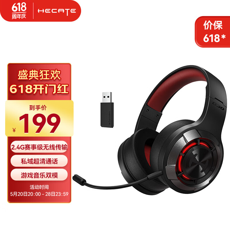 漫步者(EDIFIER)HECATE G30S雷霆版2.4G无线蓝牙双模游戏耳机头戴式多平台兼容电脑网课办公会议电竞吃鸡耳麦 黑红价格:249.00元!