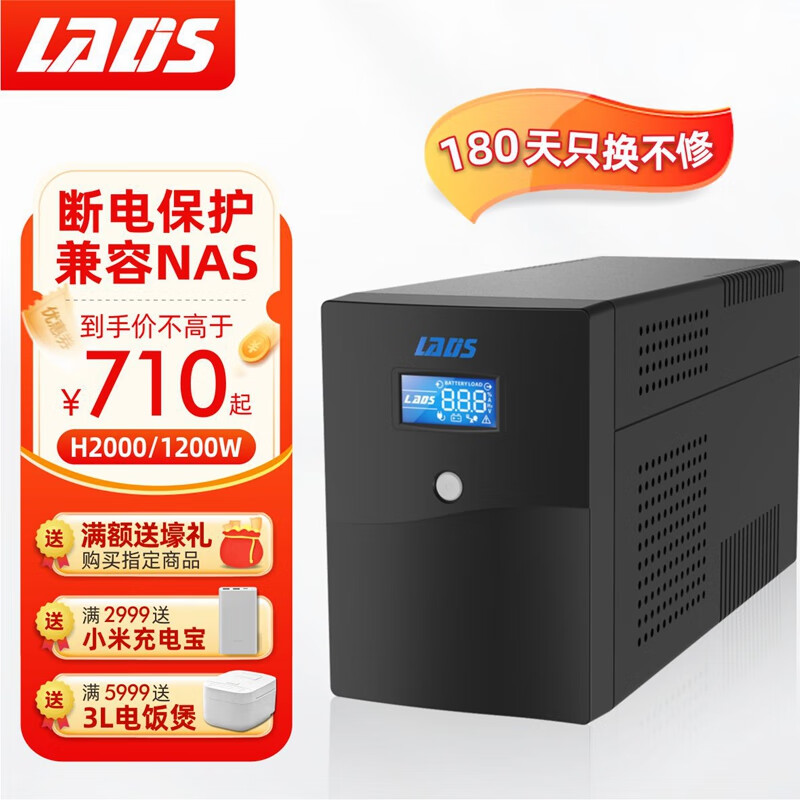 雷迪司H2000 UPS不间断电源台式电脑服务器防停电2000VA/1200W大功率应急电源兼容NAS自动开关机防雷稳压价格:650.00元!