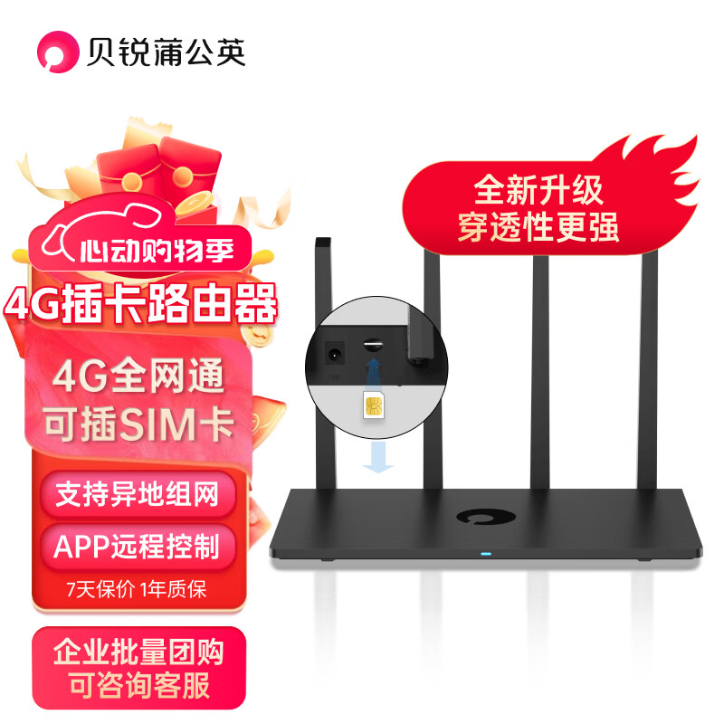 贝锐蒲公英 4g路由器x4c无线路由器穿墙移动插卡cpe通sim卡户外随身wifi无需宽带车载wifi企业异地组网价格:199.00元!