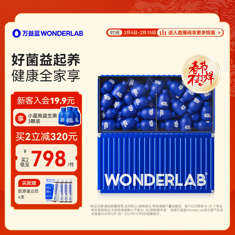 万益蓝WonderLab 小蓝瓶益生菌家庭分享装 高活性肠胃益生菌 成人孕妇老人肠道益生菌粉80瓶价格:958.00元!