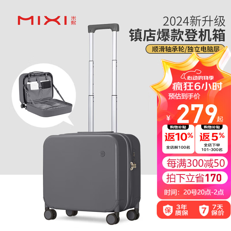 米熙高颜值小行李箱男登机箱子拉杆箱包旅行箱男密码箱18英寸矿岩灰36价格:449.00元!