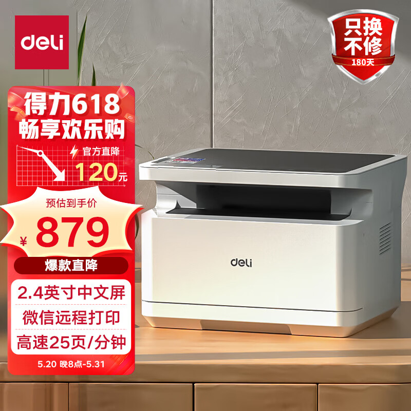 得力(deli)M2020W黑白三合一多功能打印机复印机扫描机一体机 A4办公商用 家用学习作业手机无线 激光打印机价格:879.00元!