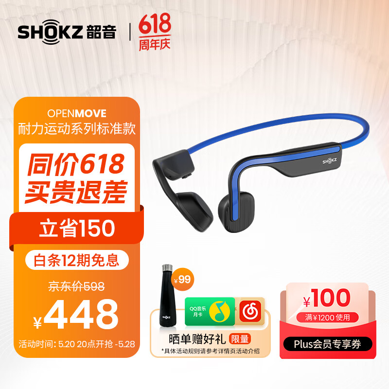 韶音(SHOKZ)OpenMove骨传导蓝牙无线开放式耳机耳麦 不入耳式运动跑步通话降噪 适用于苹果华为 S661新潮蓝价格:448.00元!