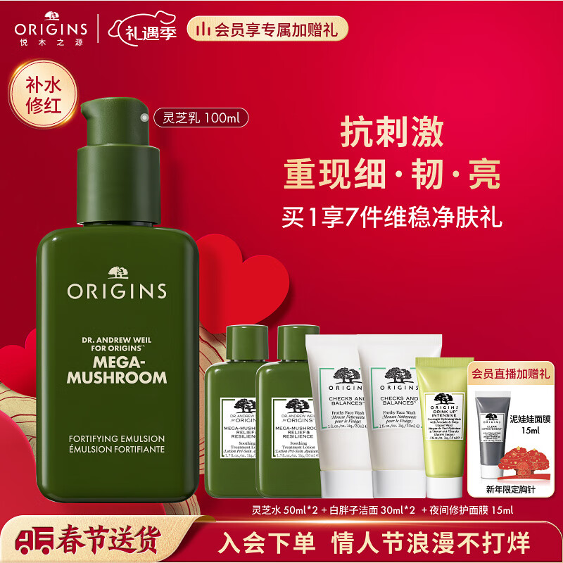 悦木之源(Origins)灵芝薄皮修护乳100ml 强韧乳液水乳护肤品礼盒化妆品情人节礼物价格:380.00元!