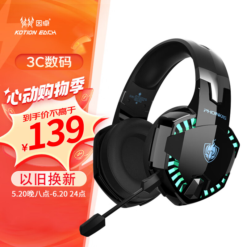 因卓(KOTION EACH)G2000Pro 游戏耳机头戴式无线蓝牙耳机7.1声道手机电脑笔记本吃鸡运动跑步音乐有线电竞耳麦带话筒价格:159.00元!