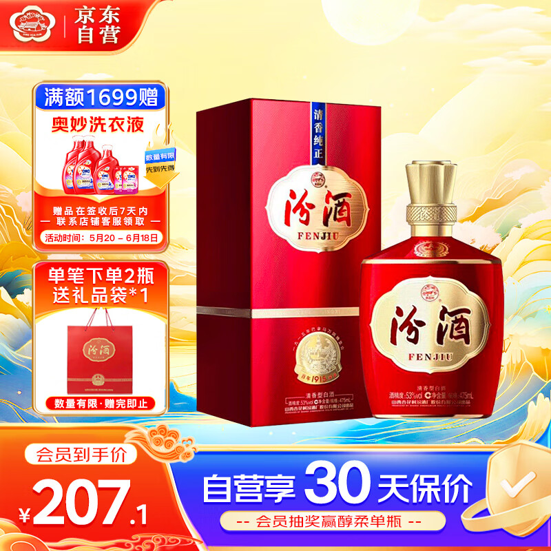 汾酒 1915巴拿马基础版 清香型白酒 53度 475ml单瓶装 送礼宴请价格:218.00元!