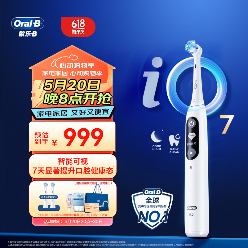 欧乐B成人电动牙刷iO7智能可视磁波刷iO系列圆头微震科技深度清洁牙龈按摩送礼送男友送女友母亲节礼物价格:999.00元!