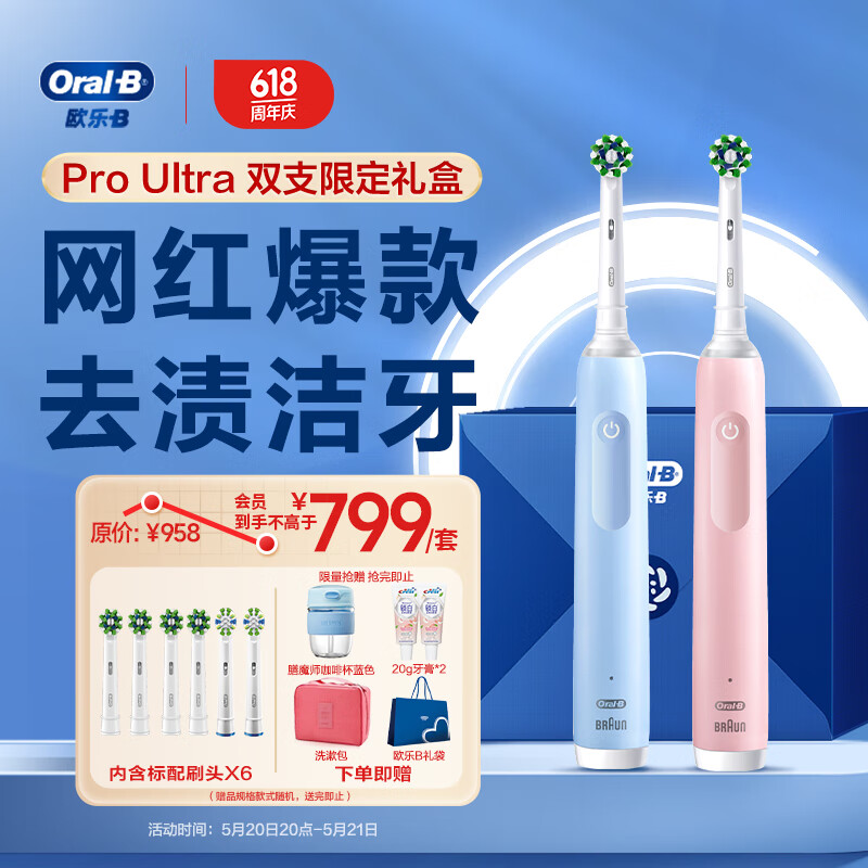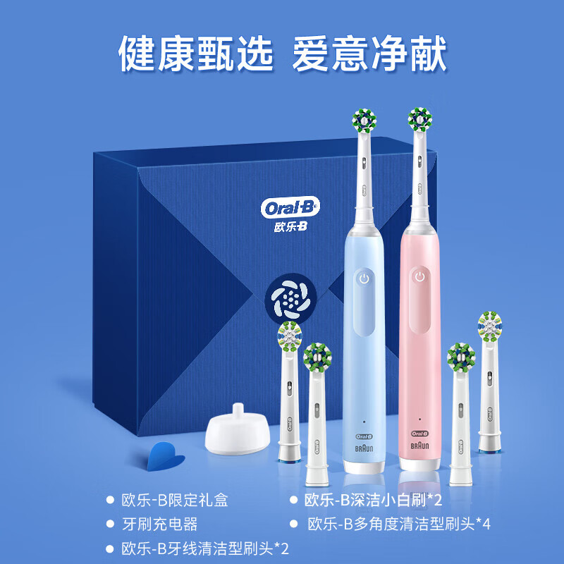 欧乐B成人电动牙刷Pro4Ultra双支甄选礼盒Pro系列3D声波圆头深度清洁送男友送女友送礼生日礼物520礼物价格:949.00元!
