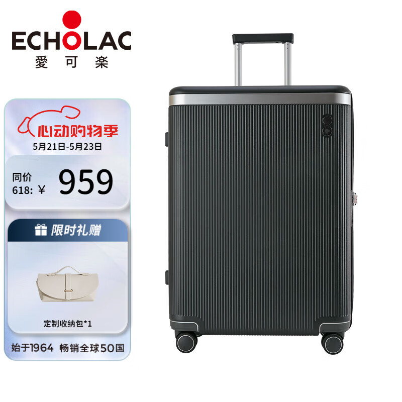 爱可乐(Echolac)明星同款 大容量行李箱拉杆箱万向轮旅行箱王朝PC142深灰色20吋价格:1109.00元!