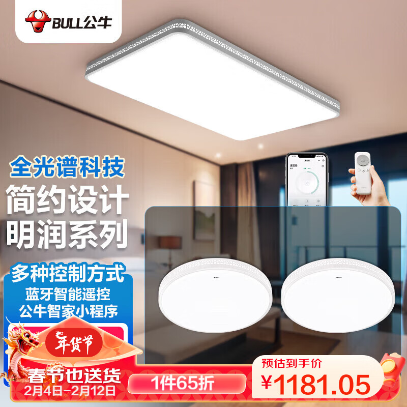 公牛(BULL)LED吸顶灯全光谱智能蓝牙连接MX-C130D-CS明润客厅灯(130W+48W*2)价格:1817.00元!