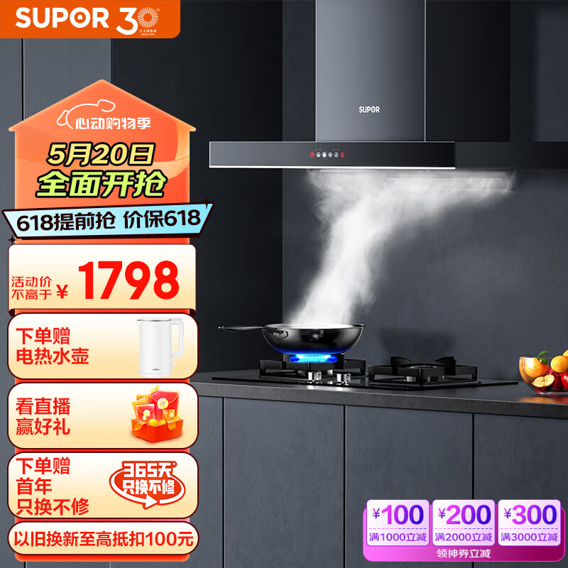 苏泊尔(SUPOR) 抽油烟机 烟灶套装22立方家用欧式吸油烟机燃气灶具套装挥手智控 自清洁 DT32+DB28液价格:1948.00元!