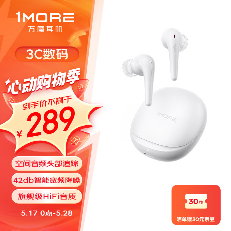 万魔(1MORE)Aero 真无线蓝牙耳机 智能深度降噪入耳式 游戏运动音乐耳机 空间音频 ES903 云母白 周杰伦代言价格:249.00元!