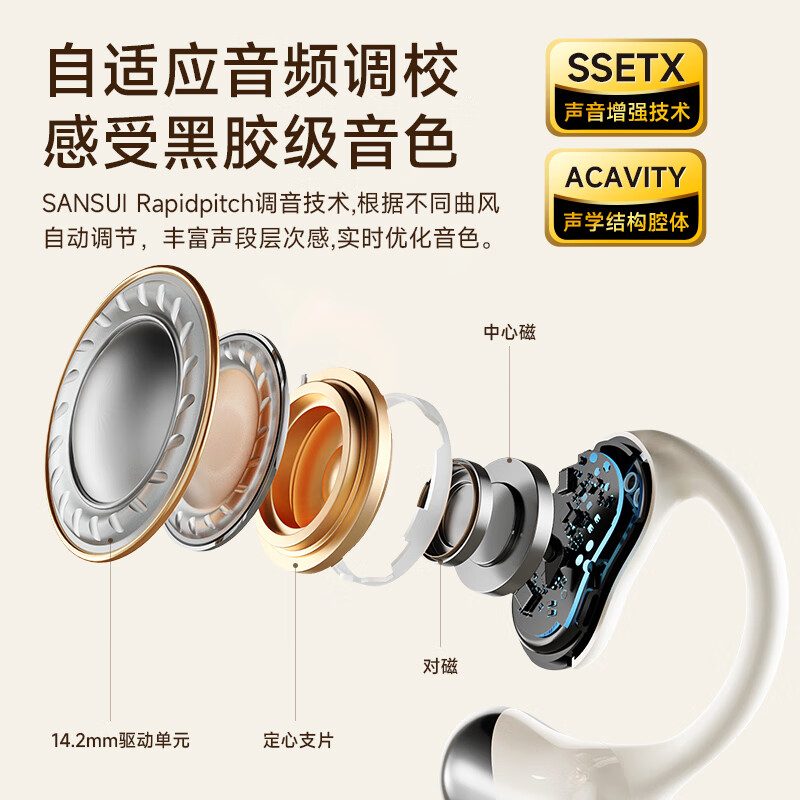 山水(SANSUI)蓝牙耳机骨传导耳机 运动骑行不入耳跑步无线挂耳式超长续航耳机 适用苹果华为VIVO安卓手机 骨传导概念不入耳式|黑色价格:259.00元!