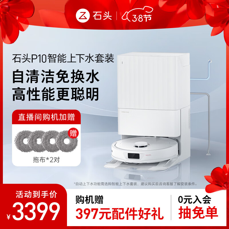 石头(roborock)扫地机器人扫拖一体 石头P10自动上下水扫拖洗烘一体机擦地机 自动清洗集尘烘干补水价格:3399.00元!
