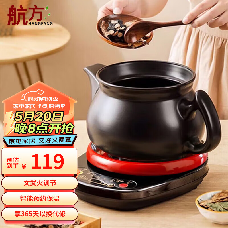 航方煎药壶智能全自动陶瓷电砂锅中药锅熬药罐中药煲2.5L分体式炖药锅煮药机价格:119.00元!